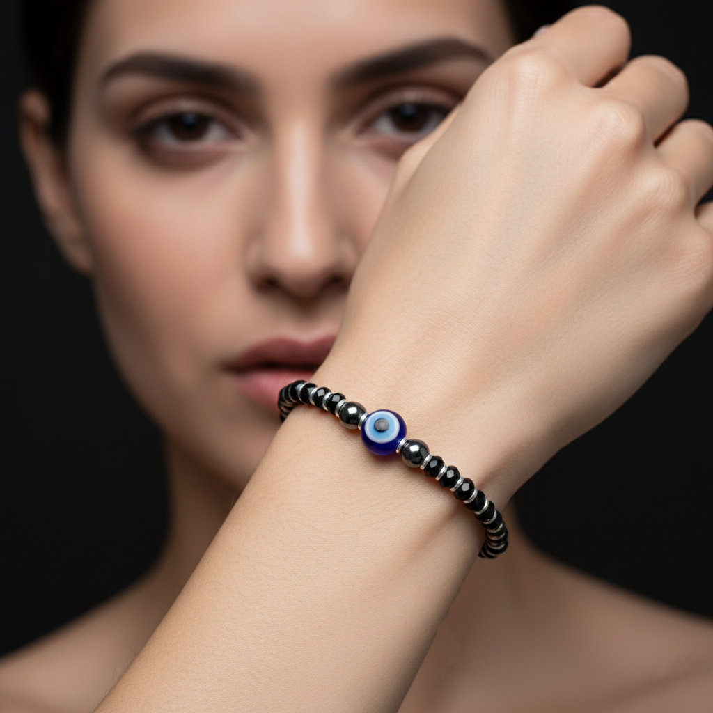 Elevate your everyday elegance with this exquisite 925 sterling silver beaded bracelet, thoughtfully designed to blend timeless craftsmanship with meaningful symbolism. Each bead is meticulously selected to create a refined aesthetic, while the striking blue evil eye charm serves as both a protective talisman and a captivating focal point. The secure spring ring clasp ensures reliable wear, making this piece perfect for daily adornment or special occasions. A sophisticated accessory that celebrates both artistry and intention.