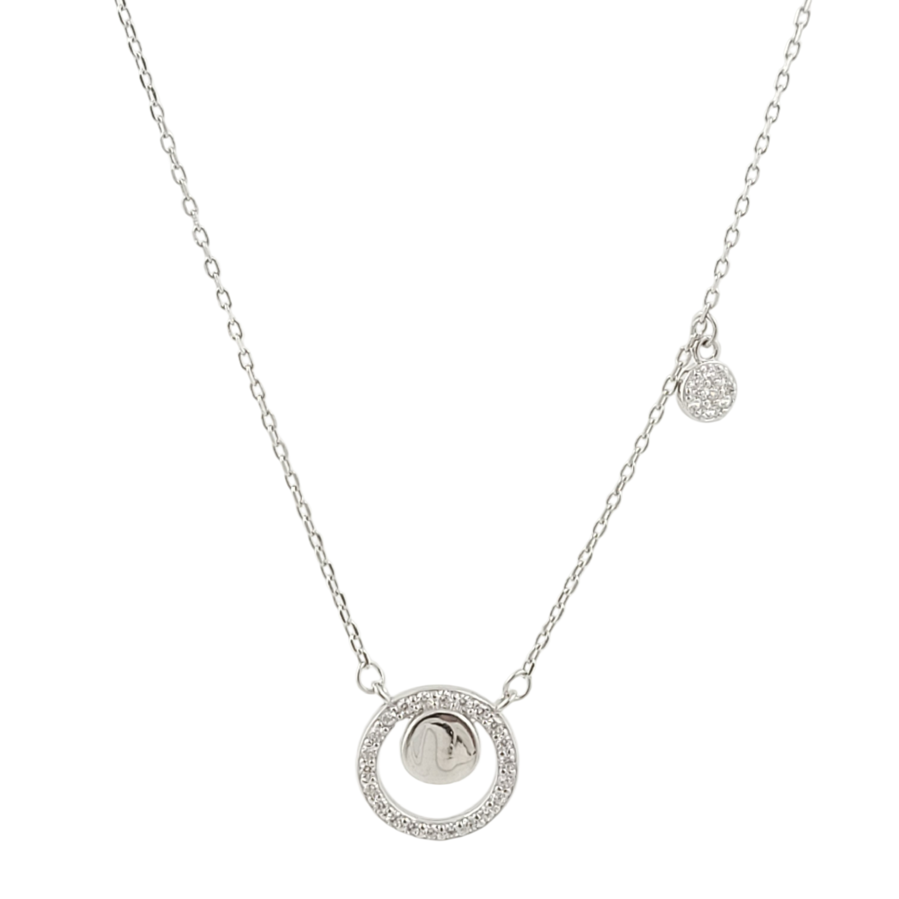 Elevate your jewelry collection with this exquisite 925 sterling silver necklace, featuring a captivating double round cubic zirconia pendant. Crafted with precision, the sparkling CZ stones catch light beautifully, creating an elegant statement piece suitable for any occasion. The lustrous sterling silver setting ensures durability and timeless appeal, making it perfect for daily wear or special celebrations. An ideal gift for the women in your life—whether for weddings, anniversaries, or festive seasons—this necklace combines sophistication with affordable luxury, delivering the brilliance of fine jewelry without compromise.