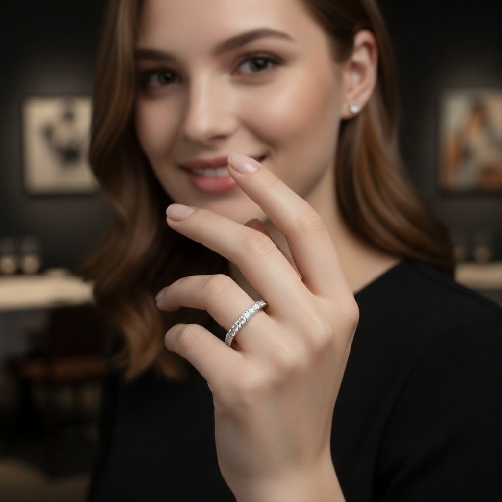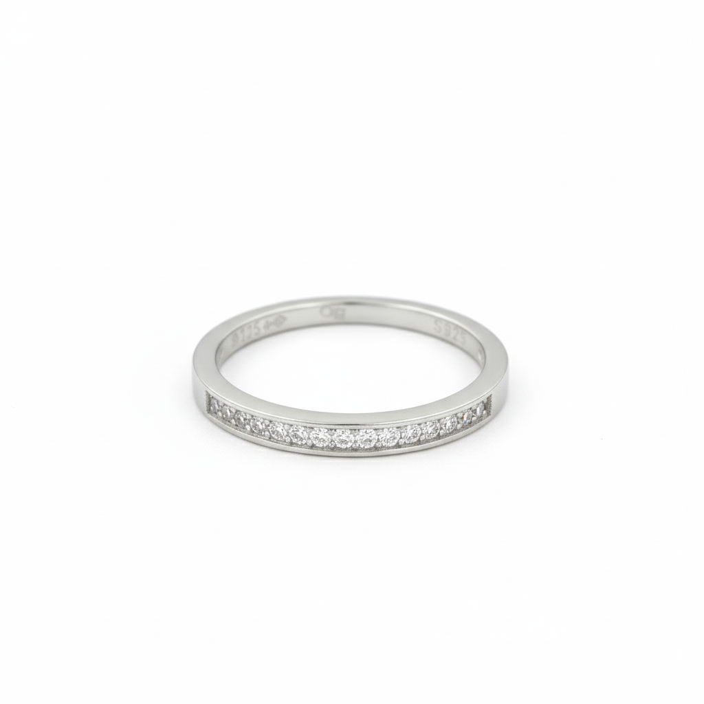 Celebrate your commitment with this exquisite eternity wedding band, meticulously crafted in 925 sterling silver. Brilliant diamonds are channel-set along the band's entire circumference, creating a seamless sparkle that catches light from every angle. The timeless eternity design symbolizes endless love, while the secure channel setting ensures each stone remains protected and brilliantly visible. Perfect as a wedding band, anniversary gift, or meaningful addition to any fine jewelry collection. This sophisticated piece combines classic elegance with contemporary craftsmanship for a ring you'll treasure forever.