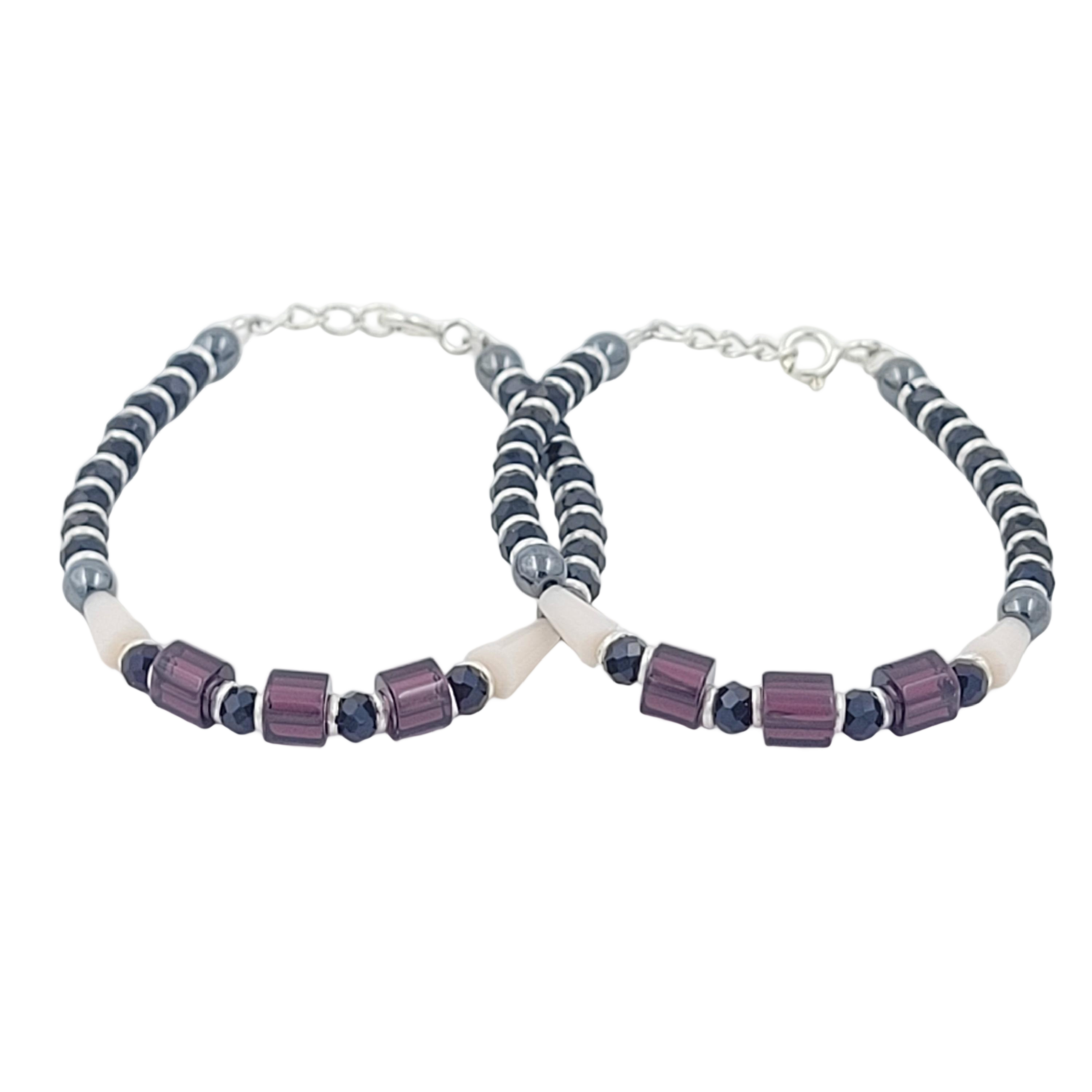 Introduce your child to timeless elegance with this exquisite handcrafted nazariya, meticulously fashioned from 925 sterling silver. Featuring vibrant purple and navy glass beads complemented by delicate white accent pieces, this statement jewelry piece combines traditional craftsmanship with contemporary design. Perfect for special occasions, festivals, or everyday wear, it adds a touch of refined sophistication to any young one's ensemble. Each piece is carefully created to ensure durability and comfort, making it an heirloom-worthy accessory that celebrates cultural heritage with understated grace.