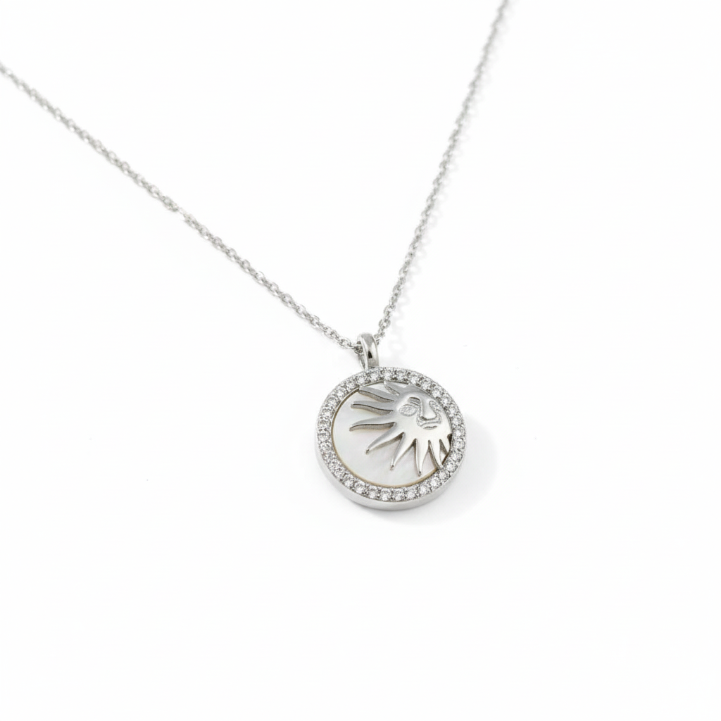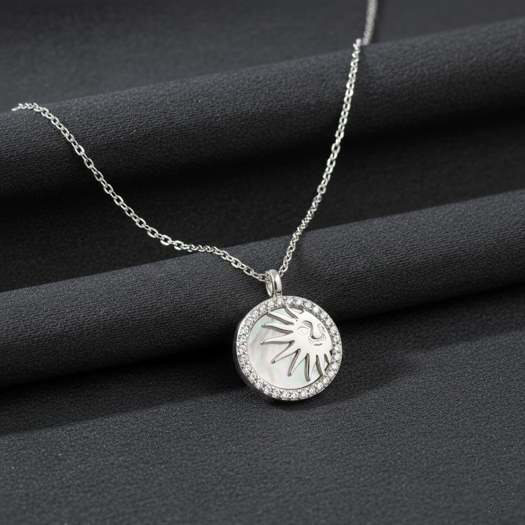 Radiate celestial elegance with this exquisite sterling silver necklace, featuring a luminous mother-of-pearl sun star pendant. Crafted from authentic 925 sterling silver, this piece combines timeless sophistication with natural beauty. The iridescent mop shell captures light beautifully, creating a mesmerizing play of colors that complements any complexion. Perfect for marking life's precious moments—whether a wedding celebration, festive season, or heartfelt gift for the women you cherish. A versatile treasure that transitions effortlessly from everyday wear to special occasions, this necklace embodies grace and refined taste.