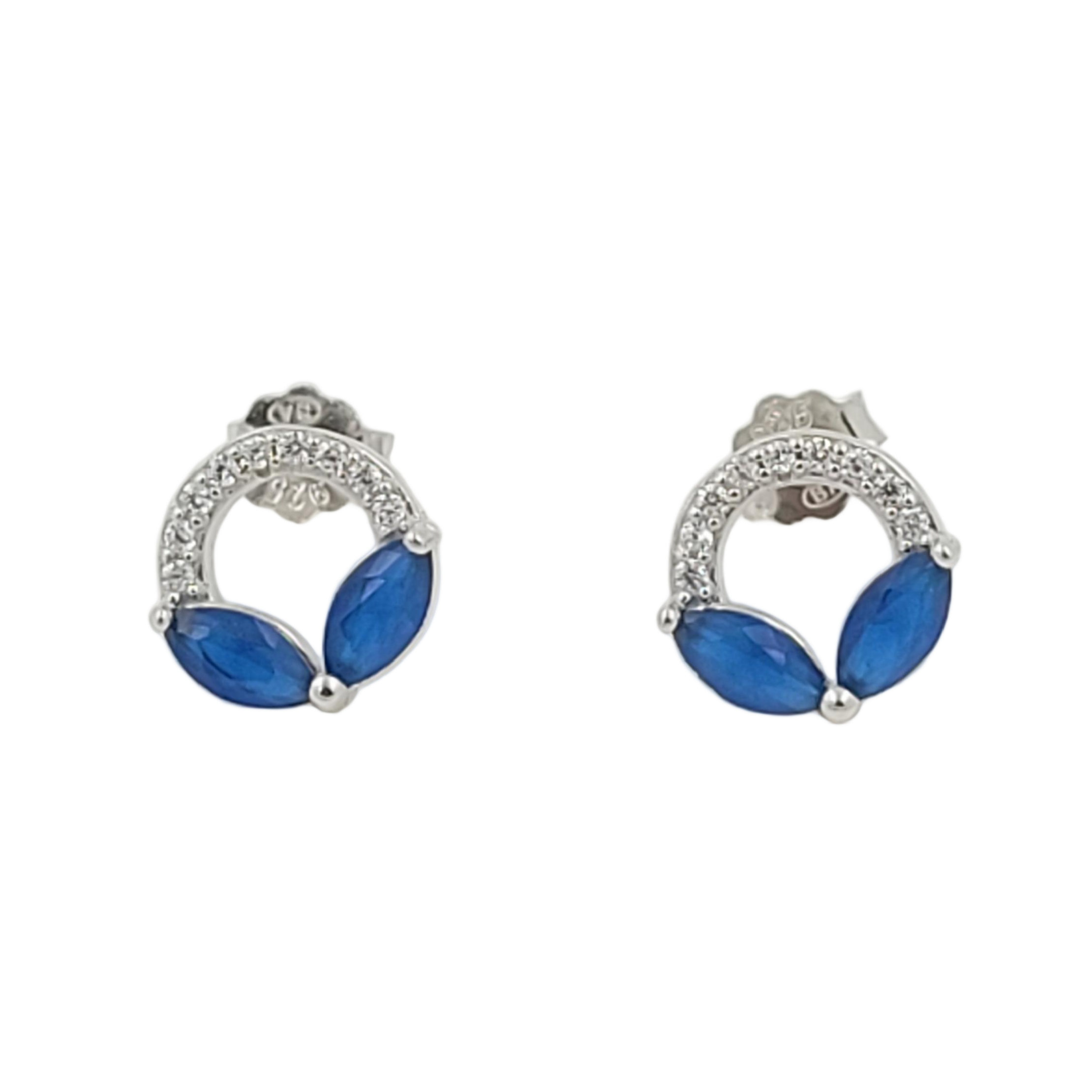 Elevate your jewelry collection with these exquisite 925 sterling silver stud earrings, featuring radiant blue sapphire crystals set in a graceful round half-circle design. Enhanced with sparkling cubic zirconia accents, these earrings deliver timeless elegance and refined sophistication. Crafted from premium sterling silver for durability and lasting brilliance, they're perfect for everyday wear or special occasions. An ideal gift for the women and girls in your life, whether for weddings, anniversaries, or festive celebrations. These versatile studs complement any style while adding a touch of luxury to your personal aesthetic.