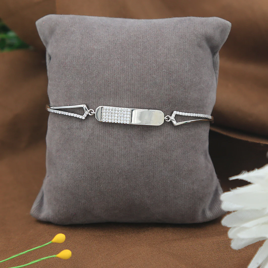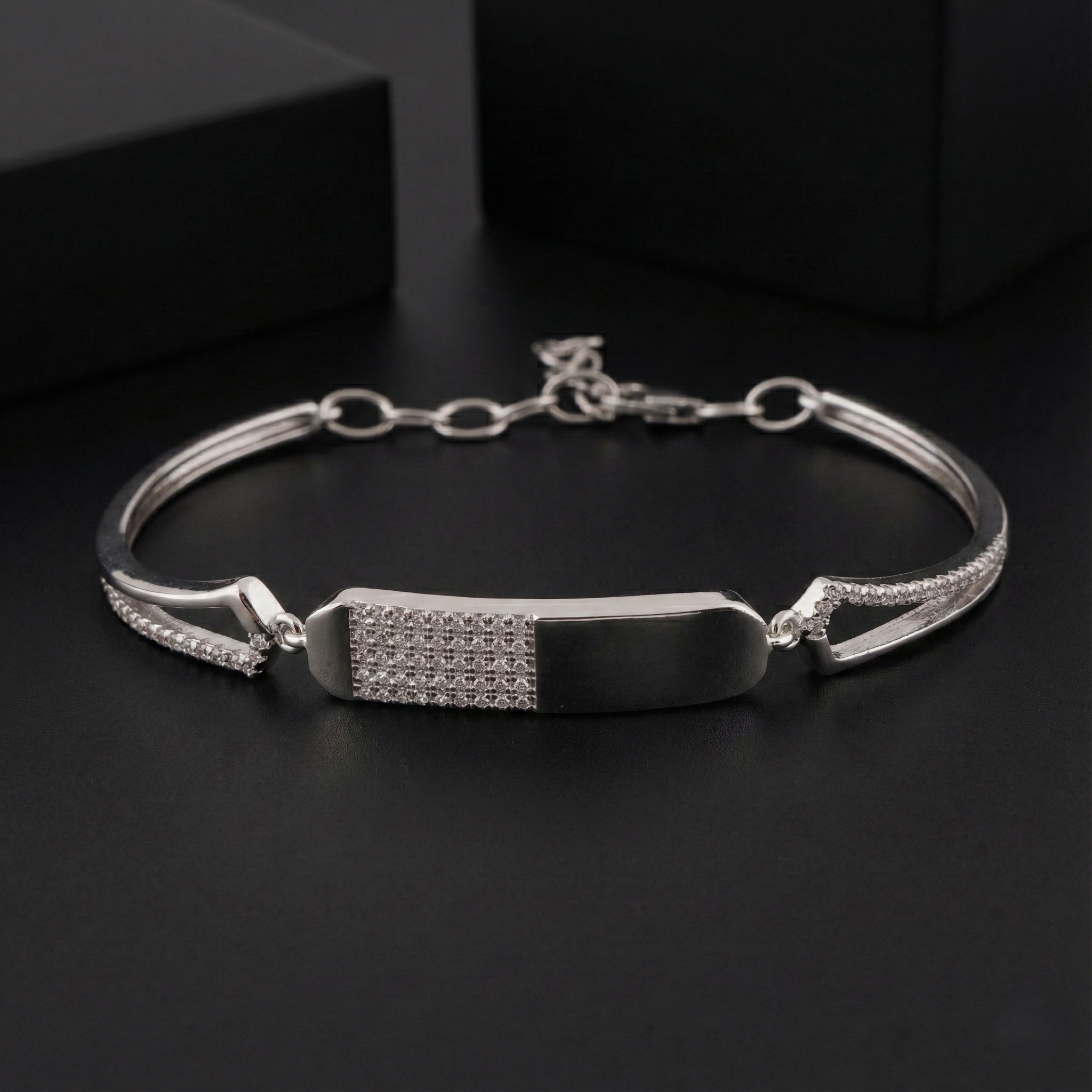 Elevate your everyday elegance with this refined 925 sterling silver bracelet, featuring a sleek bar design adorned with sparkling cubic zirconia stones. The adjustable fit ensures comfort for all wrist sizes, while the premium silver construction promises lasting brilliance and durability. Perfect for layering or wearing solo, this versatile piece transitions seamlessly from casual to formal occasions. A timeless addition to any jewelry collection that combines understated sophistication with contemporary style.