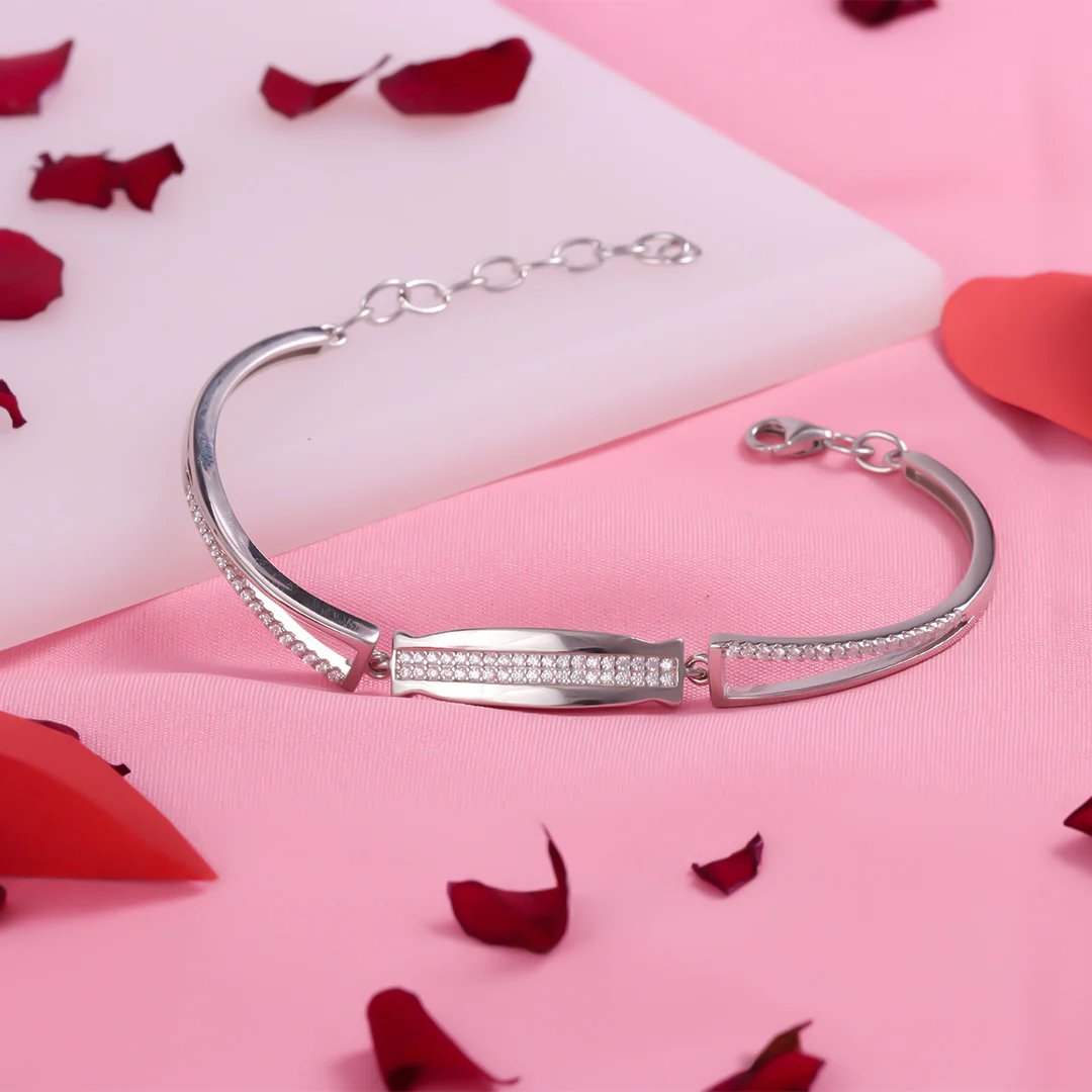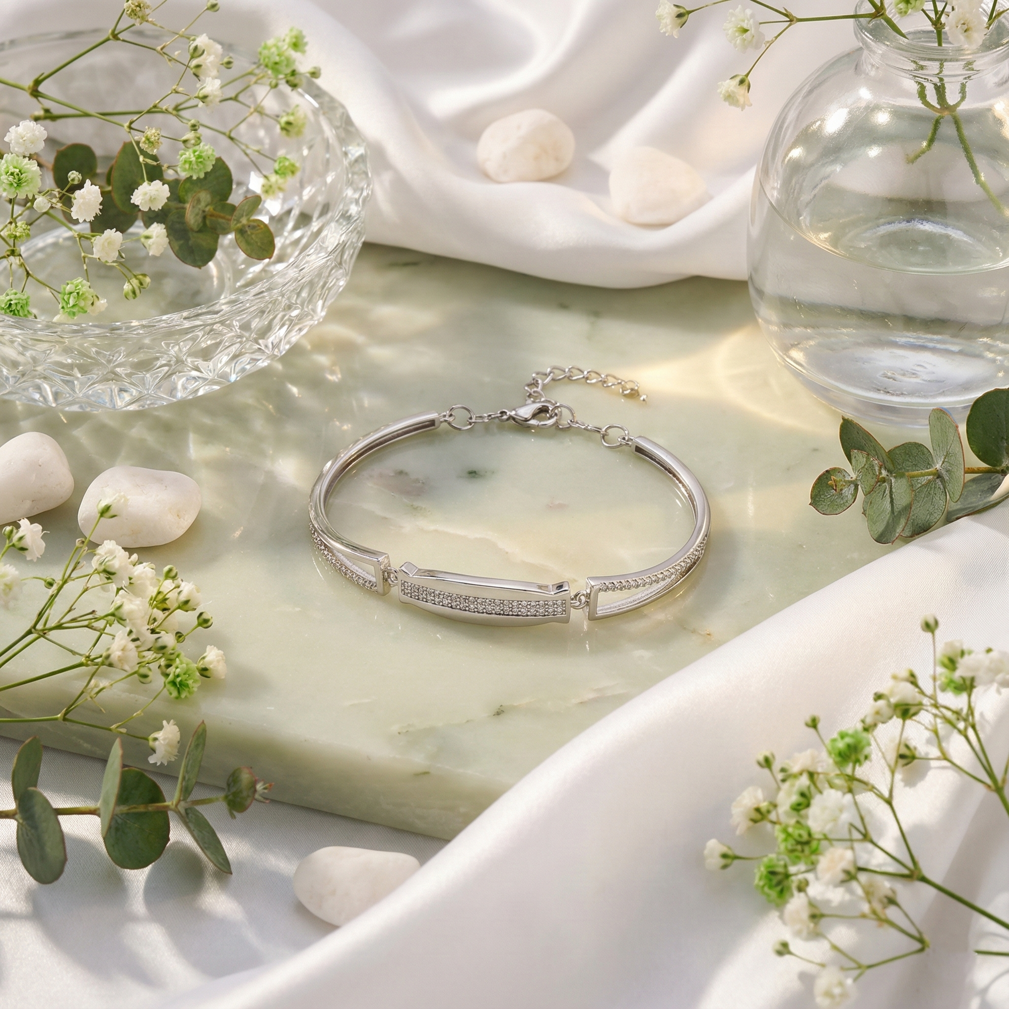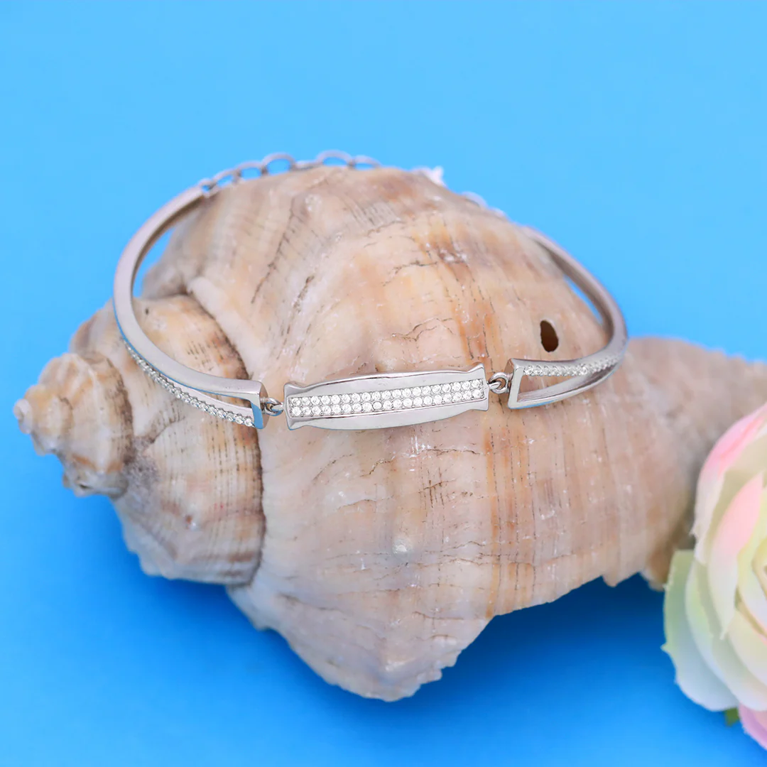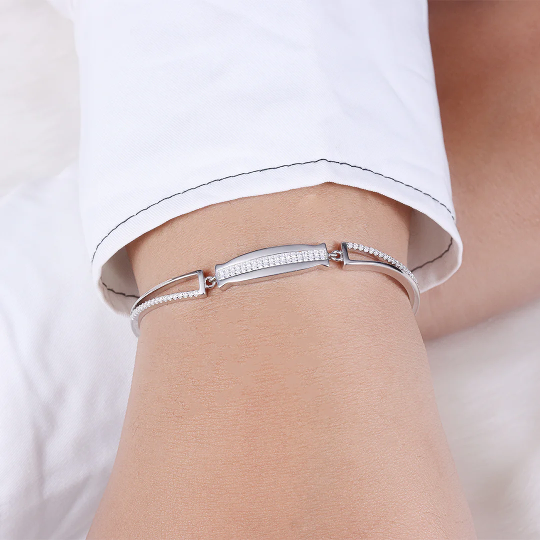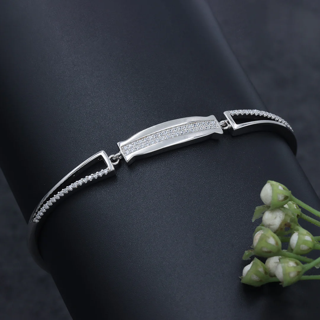 Elevate your everyday elegance with this refined 925 sterling silver bar bracelet, featuring brilliant cubic zirconia stones set in a sleek, minimalist design. Crafted with precision and timeless appeal, this piece seamlessly transitions from casual wear to special occasions. The polished silver finish catches light beautifully, while the understated bar motif offers modern sophistication without overwhelming the wrist. Perfect for layering or wearing solo, this bracelet combines contemporary aesthetics with enduring quality, making it an essential addition to any discerning jewelry collection.