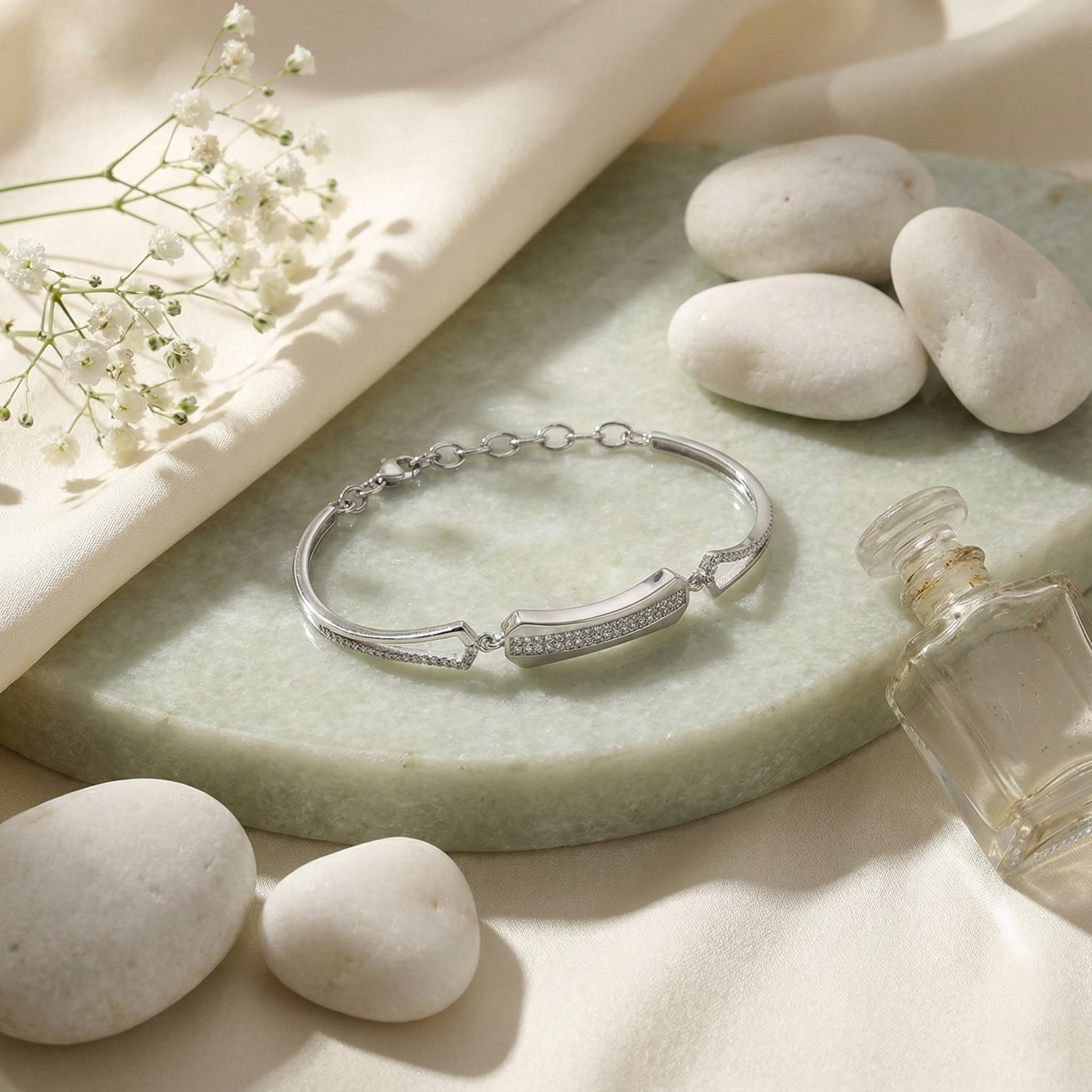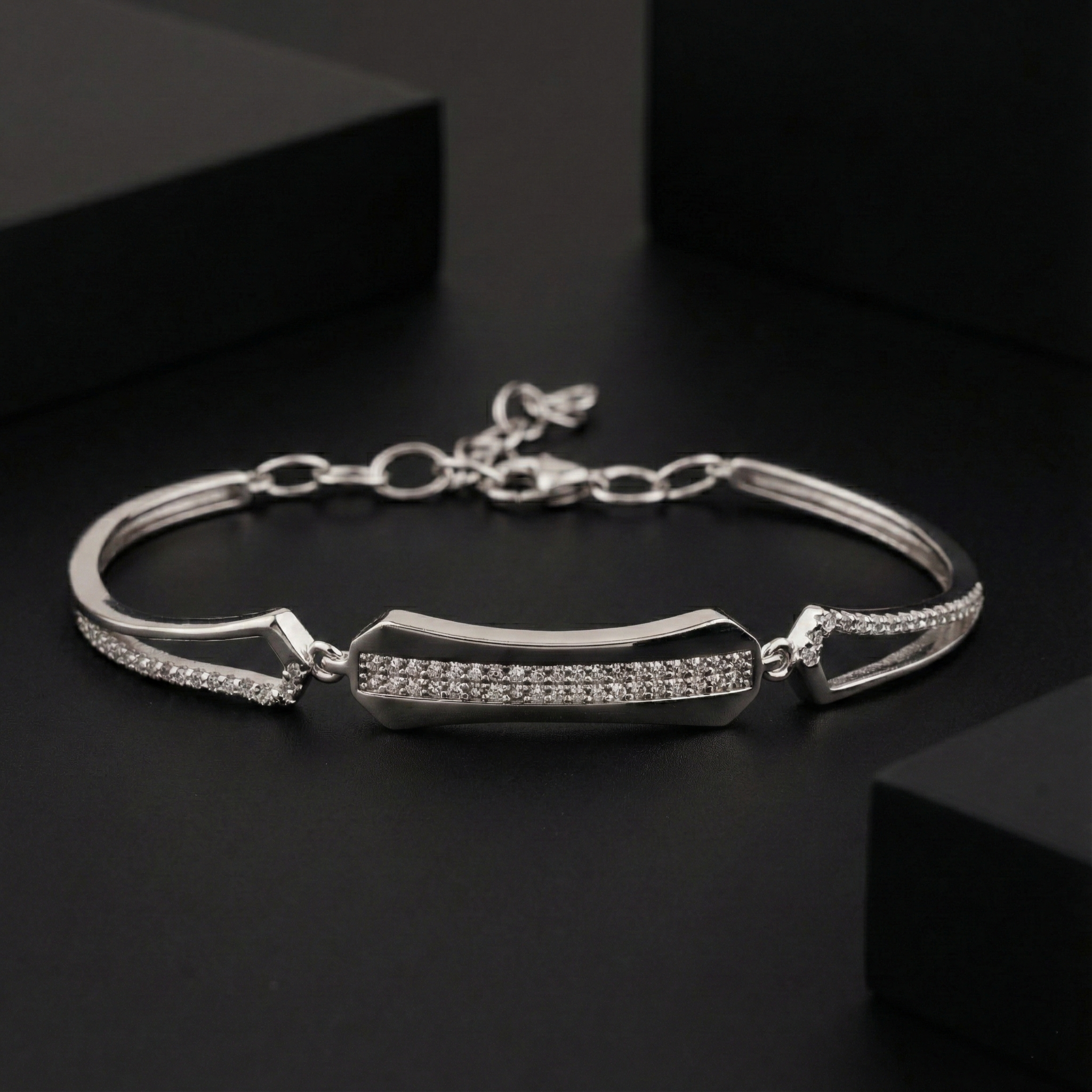 Elevate your everyday elegance with this refined 925 sterling silver bracelet, featuring a sleek bar design adorned with brilliant cubic zirconia stones. Crafted from premium sterling silver, this piece combines timeless sophistication with contemporary style, making it an ideal accessory for both casual and formal occasions. The sparkling CZ stones catch light beautifully, delivering the brilliance of fine jewelry without compromise. Perfect for layering or wearing solo, this modern bracelet brings understated luxury to your wrist.