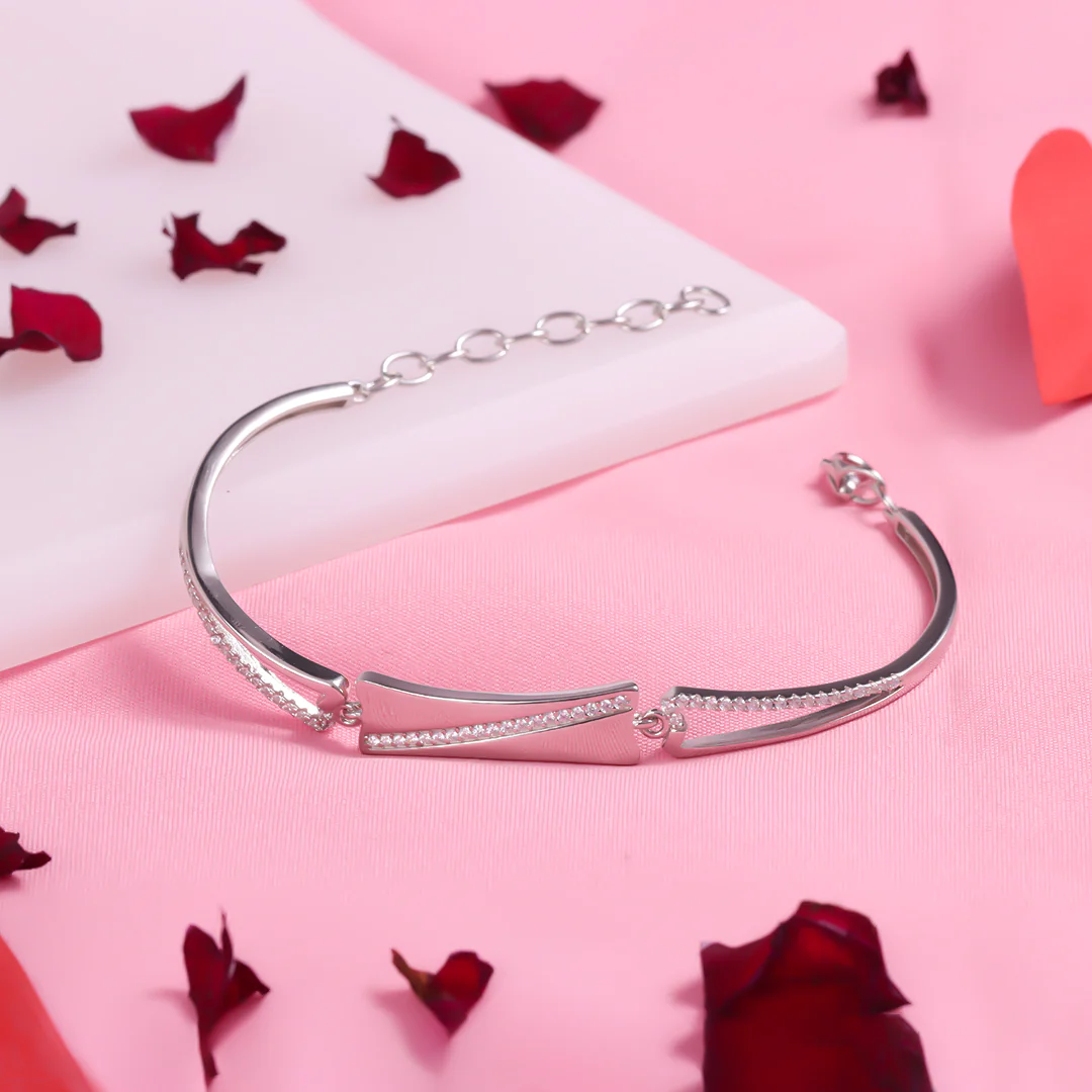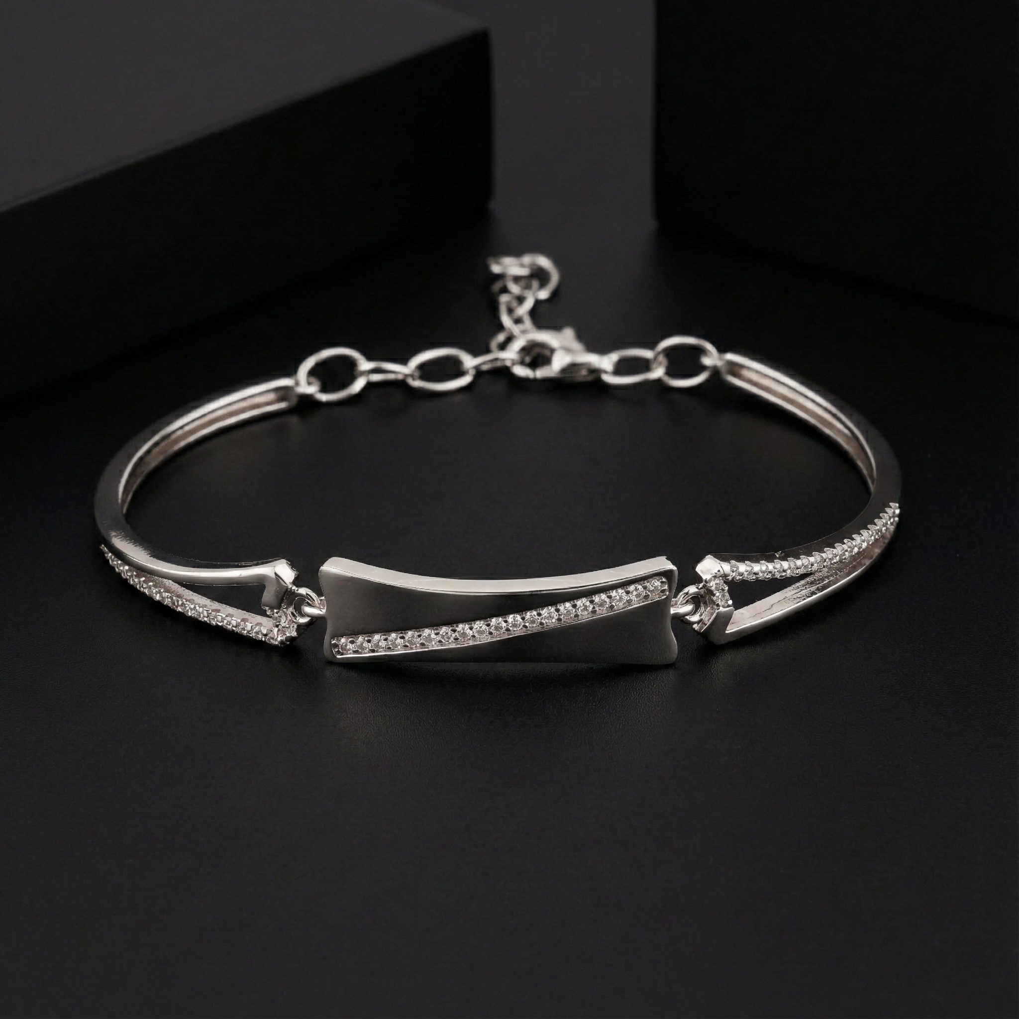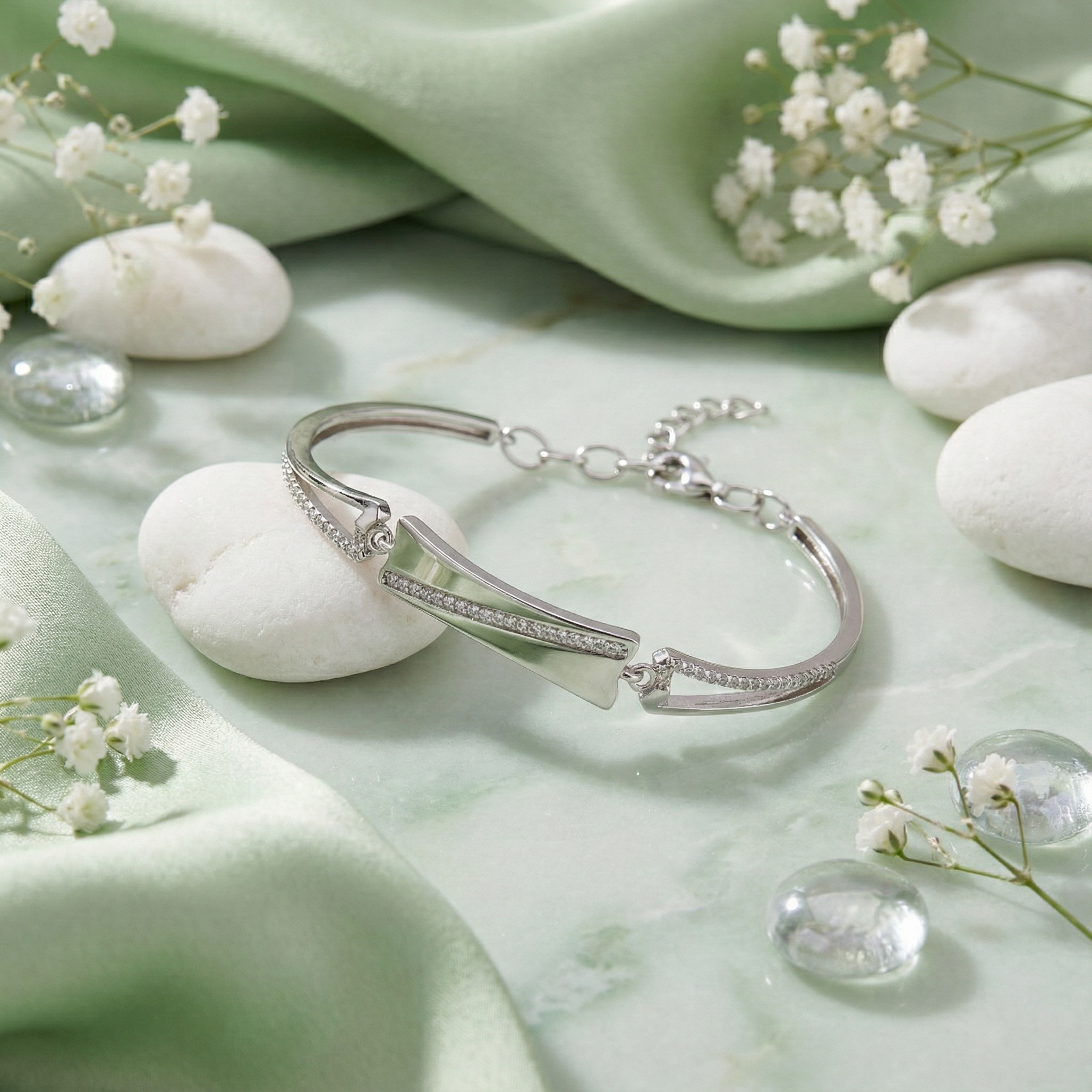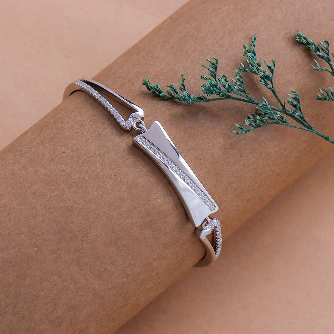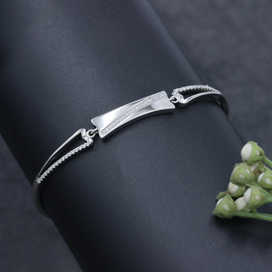 Elevate your everyday style with this refined 925 sterling silver bracelet, featuring a striking diagonal cubic zirconia bar that captures light with understated brilliance. The minimalist design seamlessly transitions from boardroom to evening, offering timeless sophistication without compromise. Crafted from premium sterling silver for lasting durability and comfort, this piece embodies modern elegance for the discerning wearer who values quality and restraint.
