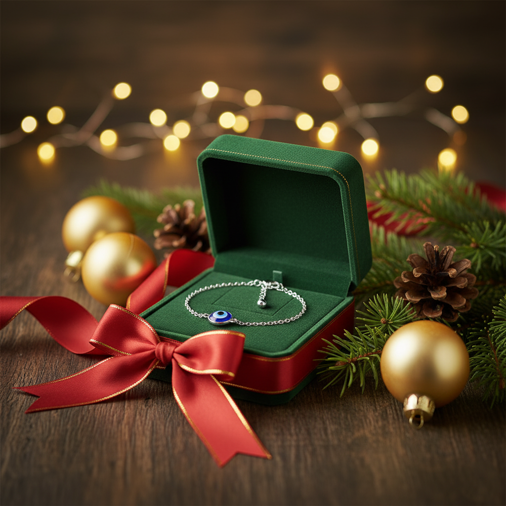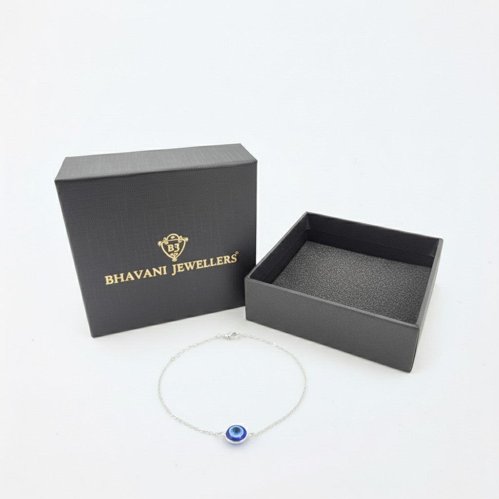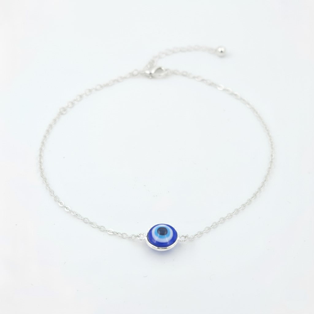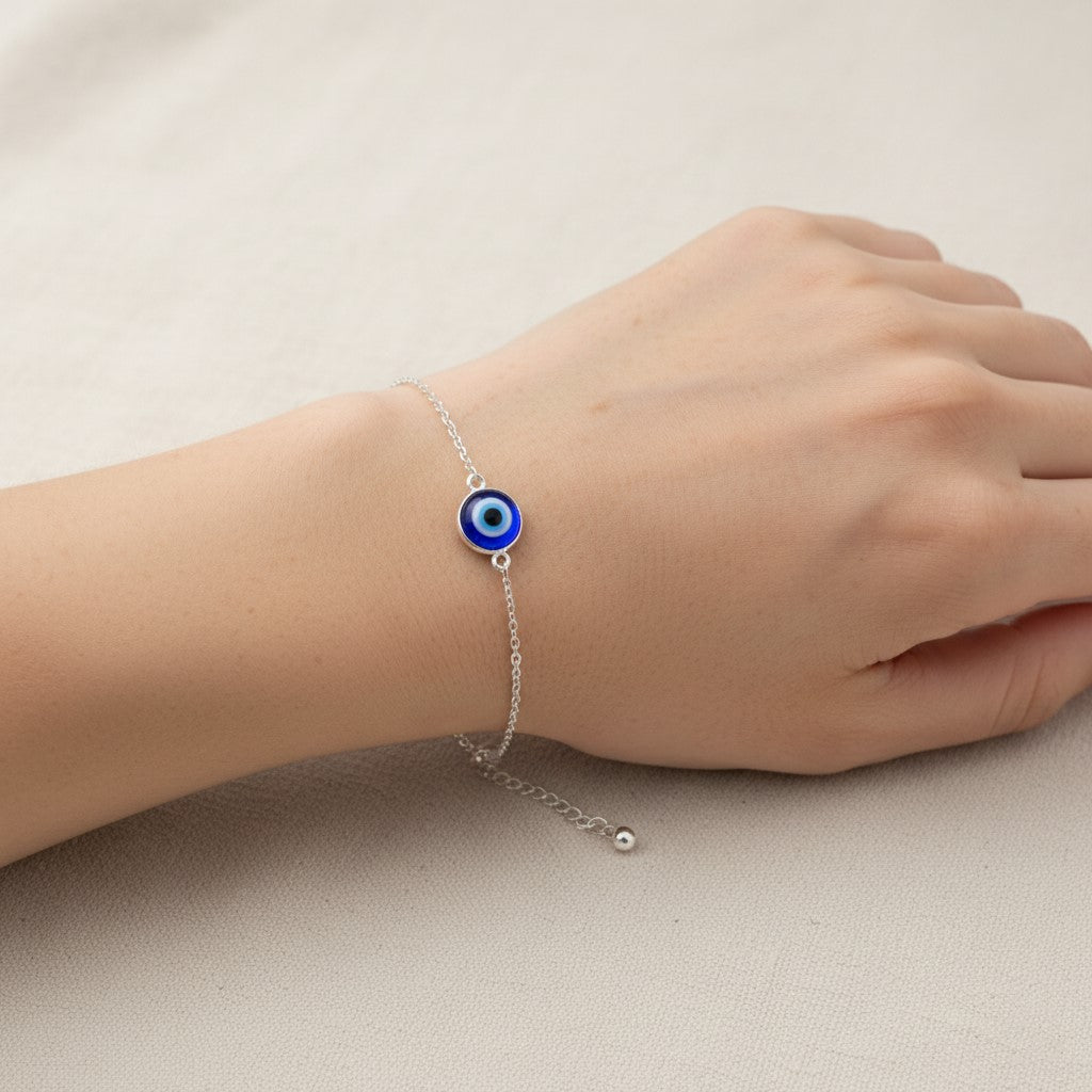 Crafted from 925 sterling silver, this elegant evil eye bracelet combines timeless symbolism with refined design. The striking blue glass bead charm sits gracefully on a delicate chain link, creating a piece that's both protective and understated. Perfect for layering or wearing alone, it makes a meaningful gift for women and girls on any occasion—from weddings to holidays. A versatile accessory that bridges spiritual significance with contemporary style.