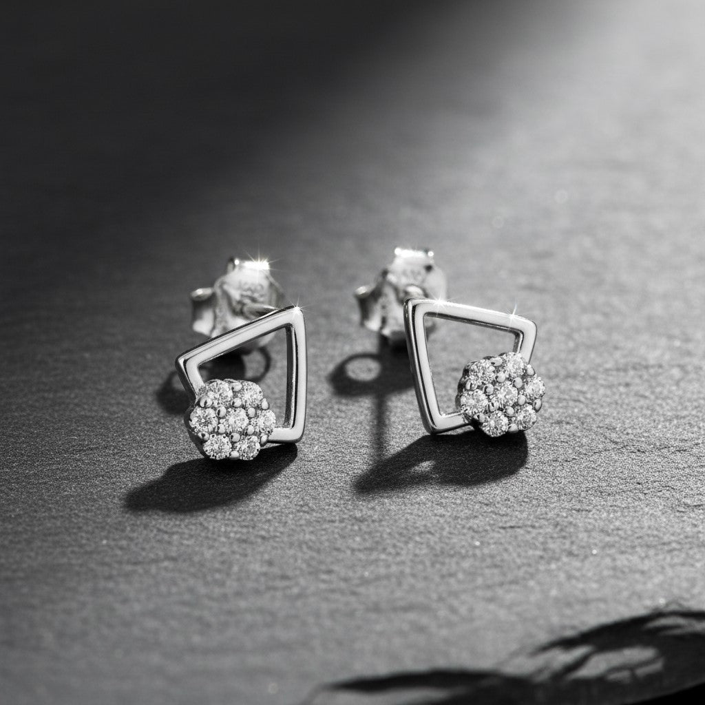 Elevate your jewelry collection with these exquisite 925 sterling silver stud earrings, featuring a striking geometric square design adorned with precisely pave-set rhinestones. Crafted for the modern woman who appreciates refined elegance, these versatile studs seamlessly transition from everyday wear to special occasions. The lustrous sterling silver paired with sparkling crystals creates a sophisticated aesthetic that complements any ensemble. Perfect for gifting to the women and girls you cherish, these earrings make an unforgettable choice for weddings, anniversaries, and festive celebrations. Timeless, radiant, and beautifully crafted.