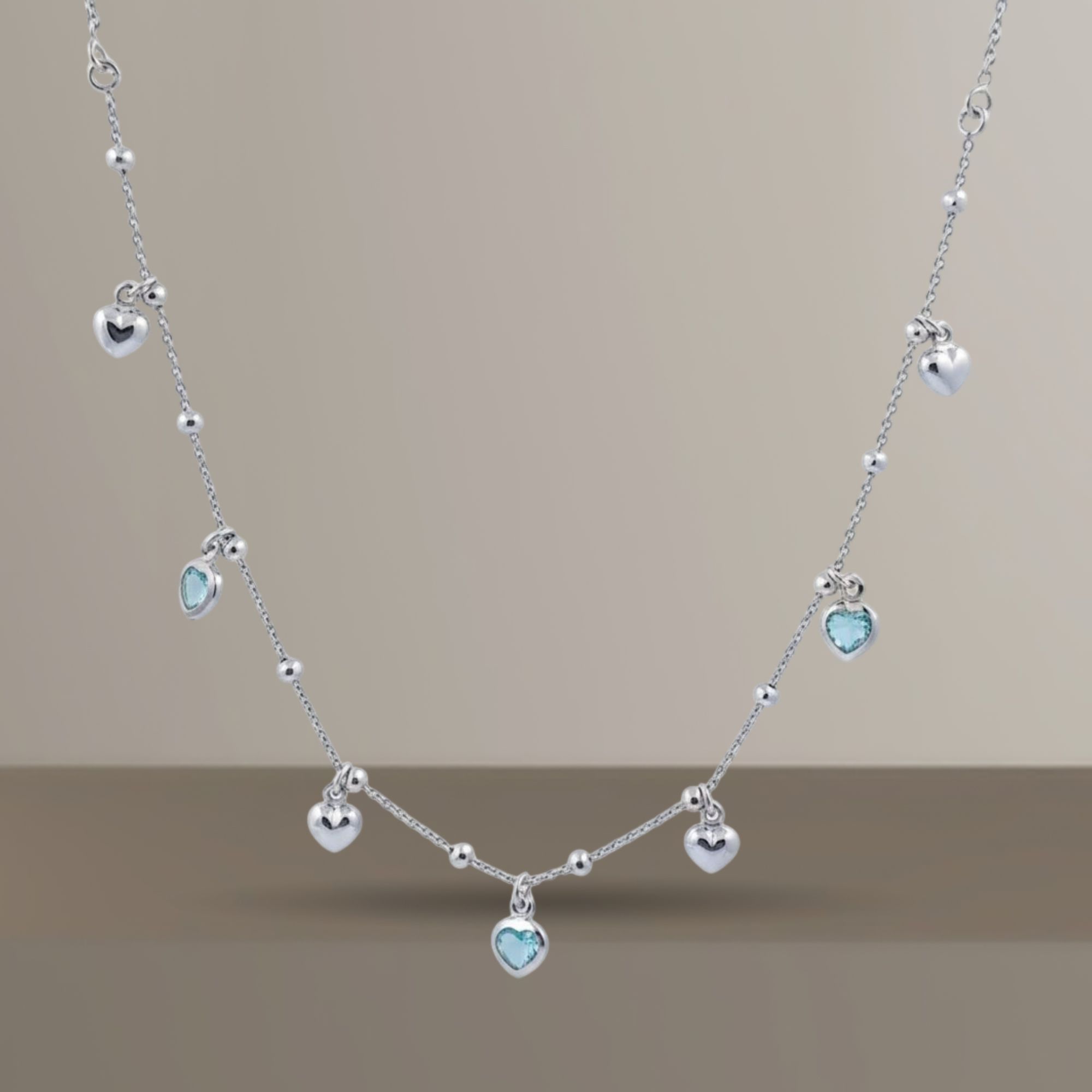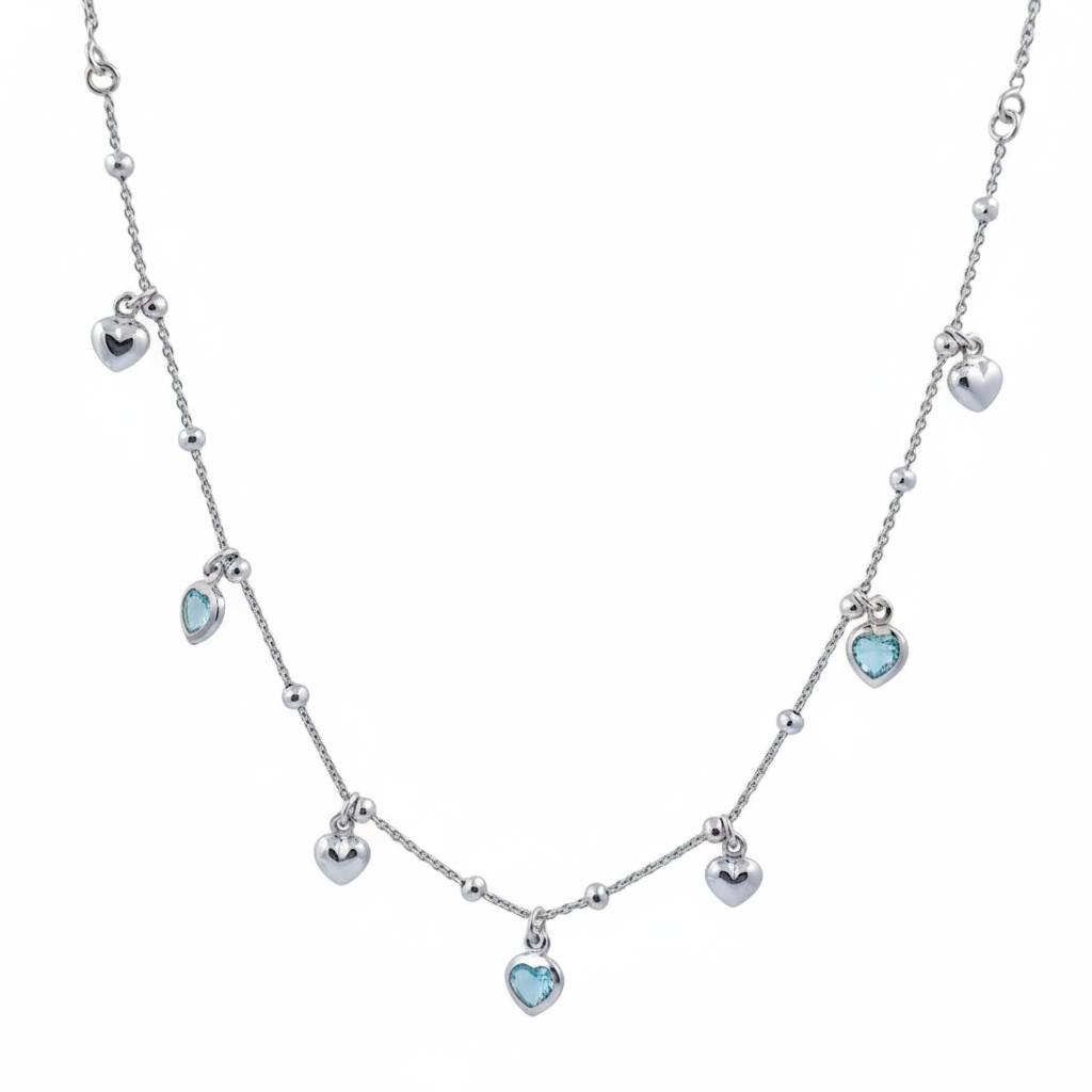 Elevate your everyday elegance with this exquisite layered necklace, crafted from premium 925 sterling silver. Featuring delicate heart charms adorned with a captivating blue crystal centerpiece, this piece seamlessly blends timeless romance with contemporary sophistication. The thoughtfully designed layers create dimension and visual interest, making it versatile enough for casual wear yet refined enough for special occasions. Perfect for those who appreciate fine jewelry that tells a story of grace and refinement.