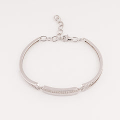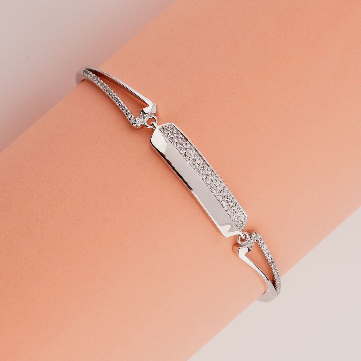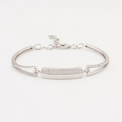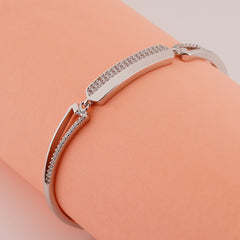 This 925 Sterling Silver Matte Half Zircon Baguette Adjustable Ladies Kada Bracelet is finely crafted from high quality sterling silver and adorned with shimmering zircon baguettes. The adjustable design ensures a comfortable and secure fit, making it the perfect accessory for any occasion. Elevate your style with this elegant and timeless piece.