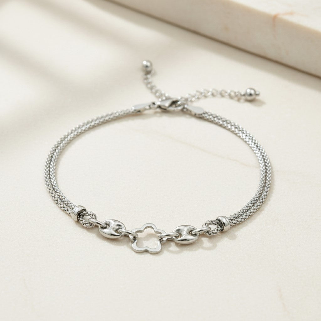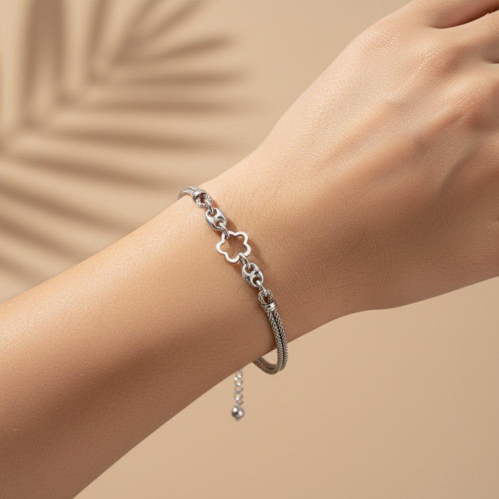 Elevate your jewelry collection with this exquisite 925 sterling silver mesh chain bracelet, featuring an enchanting white star charm. Crafted with meticulous attention to detail, this delicate piece combines timeless elegance with contemporary design, making it an ideal accessory for everyday wear or special occasions. The lustrous mesh construction offers a refined aesthetic, while the star charm adds a touch of celestial charm. Perfect for gifting to the women and girls you cherish—whether for weddings, Christmas, anniversaries, or simply to celebrate your bond. A versatile treasure that complements any wardrobe and stands as a lasting symbol of affection.
