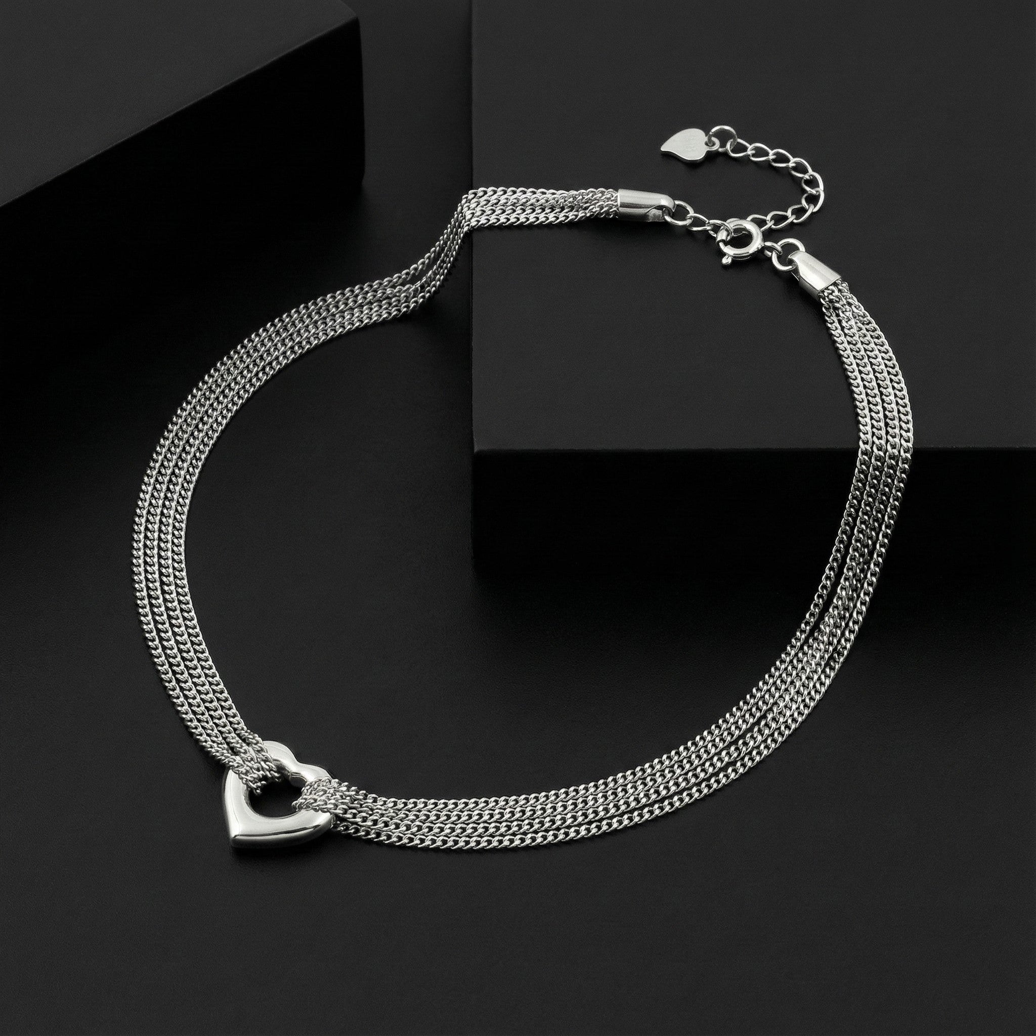 Elevate your ankle jewelry collection with this exquisite 925 sterling silver anklet, featuring a delicate heart pendant suspended across multiple graceful layers. Crafted with meticulous attention to detail, the premium polished finish catches light beautifully, adding refined elegance to any ensemble. The adjustable length ensures a perfect fit for every wearer, transitioning seamlessly from casual daywear to evening occasions. This versatile piece combines timeless design with superior craftsmanship, making it an ideal gift or personal treasure for the discerning woman who appreciates quality and sophistication.