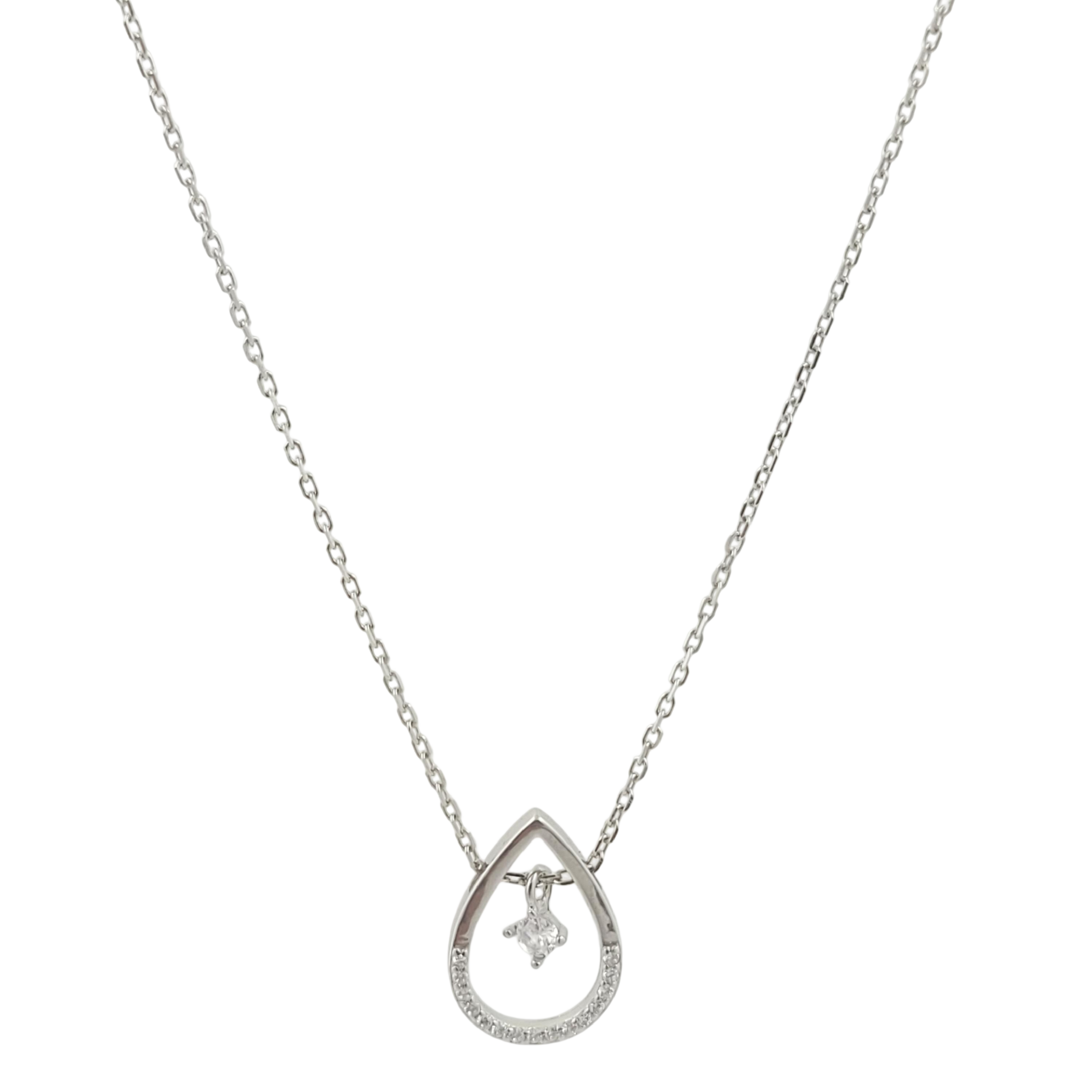 Elevate your everyday elegance with this exquisite 925 sterling silver necklace, featuring a captivating open pear-shaped design with a floating diamond at its heart. Crafted with meticulous attention to detail, this minimalist pendant combines timeless sophistication with contemporary style. The hypoallergenic sterling silver ensures comfort for sensitive skin, making it perfect for all-day wear. Whether you're dressing for a special occasion or adding a touch of refinement to casual moments, this versatile piece transitions seamlessly from day to evening. An ideal gift for the women and girls you cherish, this necklace embodies grace and understated luxury—a treasure for weddings, celebrations, and cherished moments throughout the year.