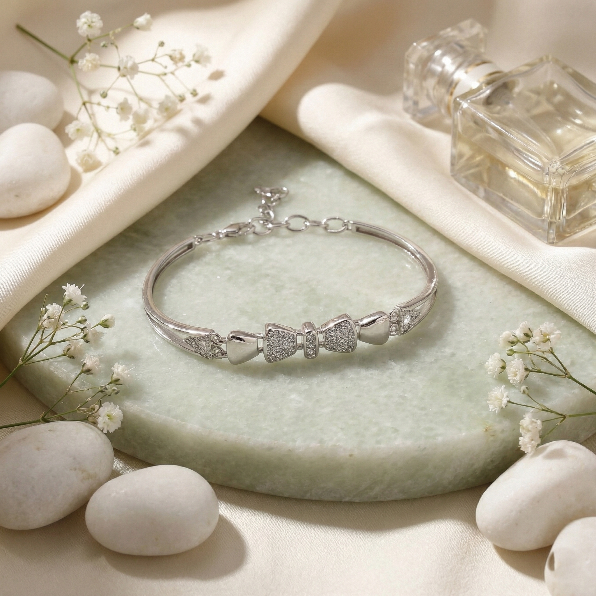 Elevate your wrist with this striking 925 sterling silver bracelet, where contemporary geometry meets timeless elegance. Each link features intricate pavé-set cubic zirconia stones that catch light with brilliant sparkle, creating a modern aesthetic with refined sophistication. The geometric design offers versatile styling—equally at home with casual wear or formal occasions. Crafted from premium sterling silver for durability and lasting lustre, this piece combines artistic vision with everyday wearability. A statement accessory for those who appreciate bold, thoughtful design.