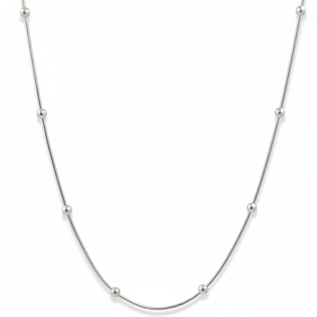 Elevate your everyday elegance with this exquisite 925 sterling silver satellite chain . Featuring delicate ball beads spaced gracefully along the chain, this piece embodies refined minimalism—perfect for those who appreciate understated luxury. The timeless design transitions seamlessly from casual to formal occasions, making it an essential addition to any jewelry collection. Crafted from authentic sterling silver, it offers durability and lasting brilliance. A versatile staple that complements any style with quiet sophistication.