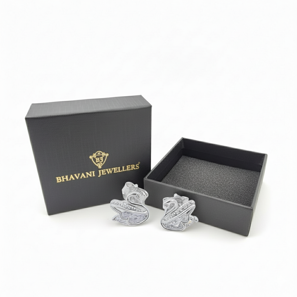 Elevate your jewelry collection with these exquisite 925 sterling silver swan stud earrings, where timeless elegance meets contemporary design. Each piece features a graceful swan silhouette adorned with sparkling cubic zirconia crystals that catch the light beautifully. The compact, refined design makes them perfect for everyday wear or special occasions, from weddings to festive celebrations. Crafted from premium sterling silver, these studs offer durability and a lustrous finish that complements any complexion. An ideal gift for the discerning woman in your life—whether for a girlfriend, daughter, or cherished friend.