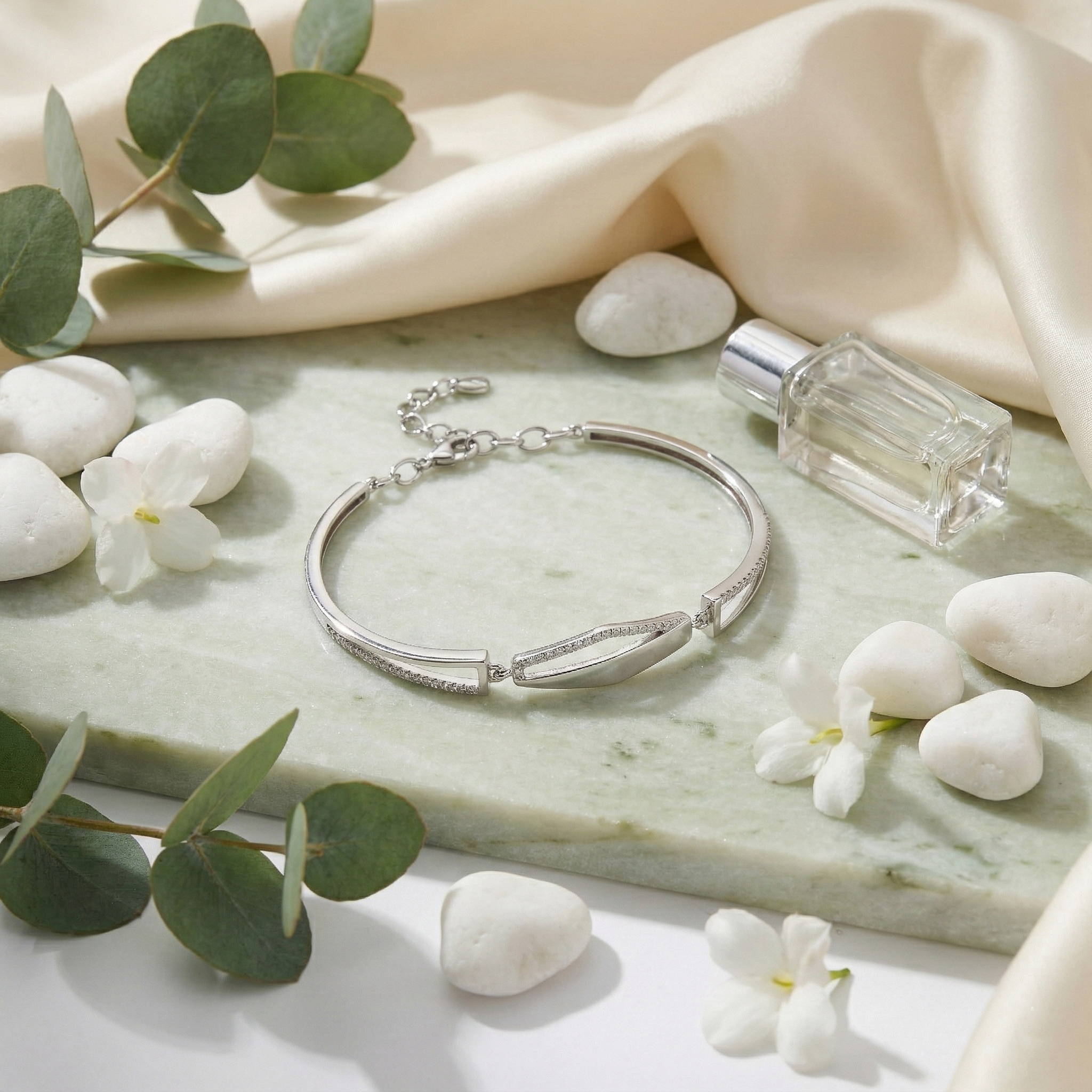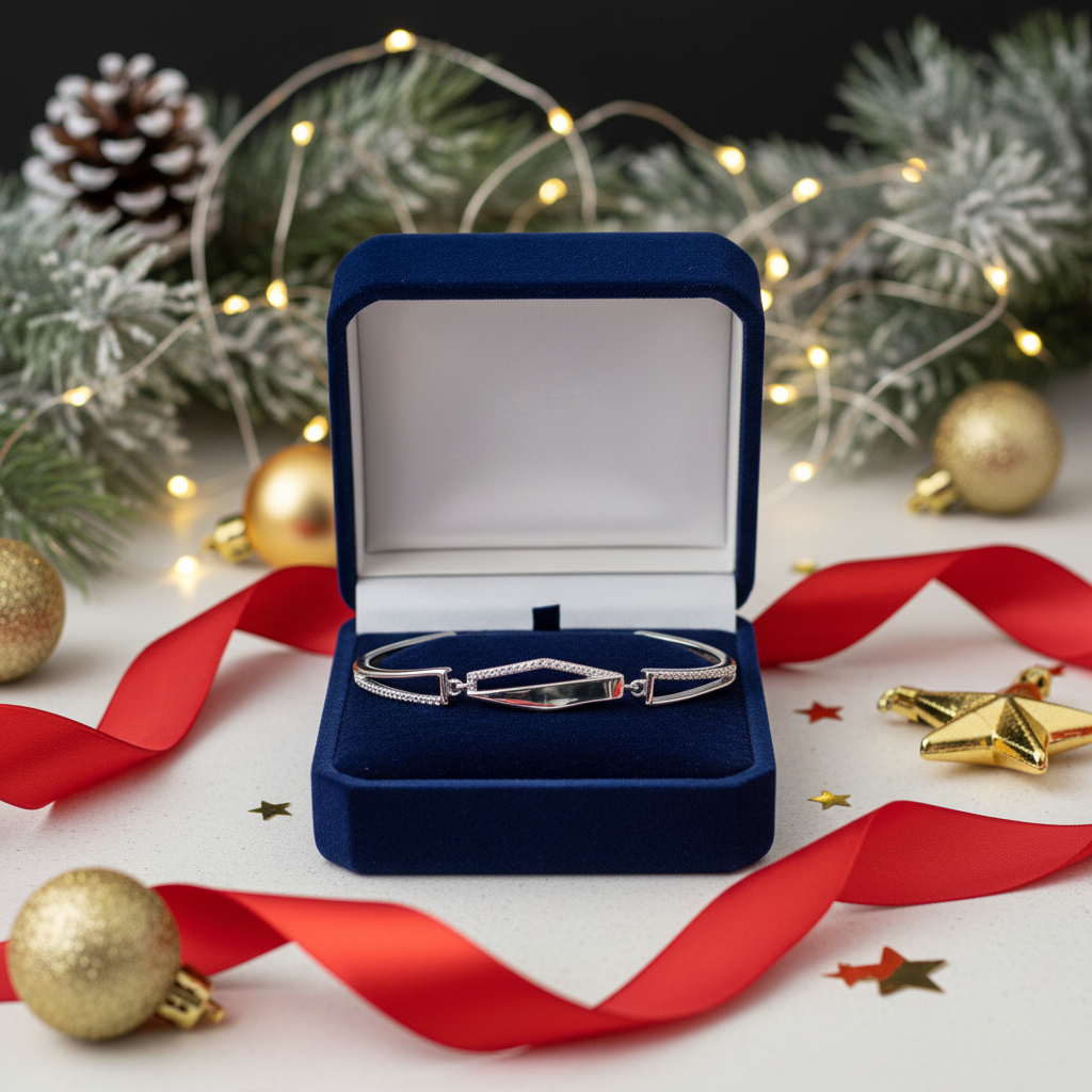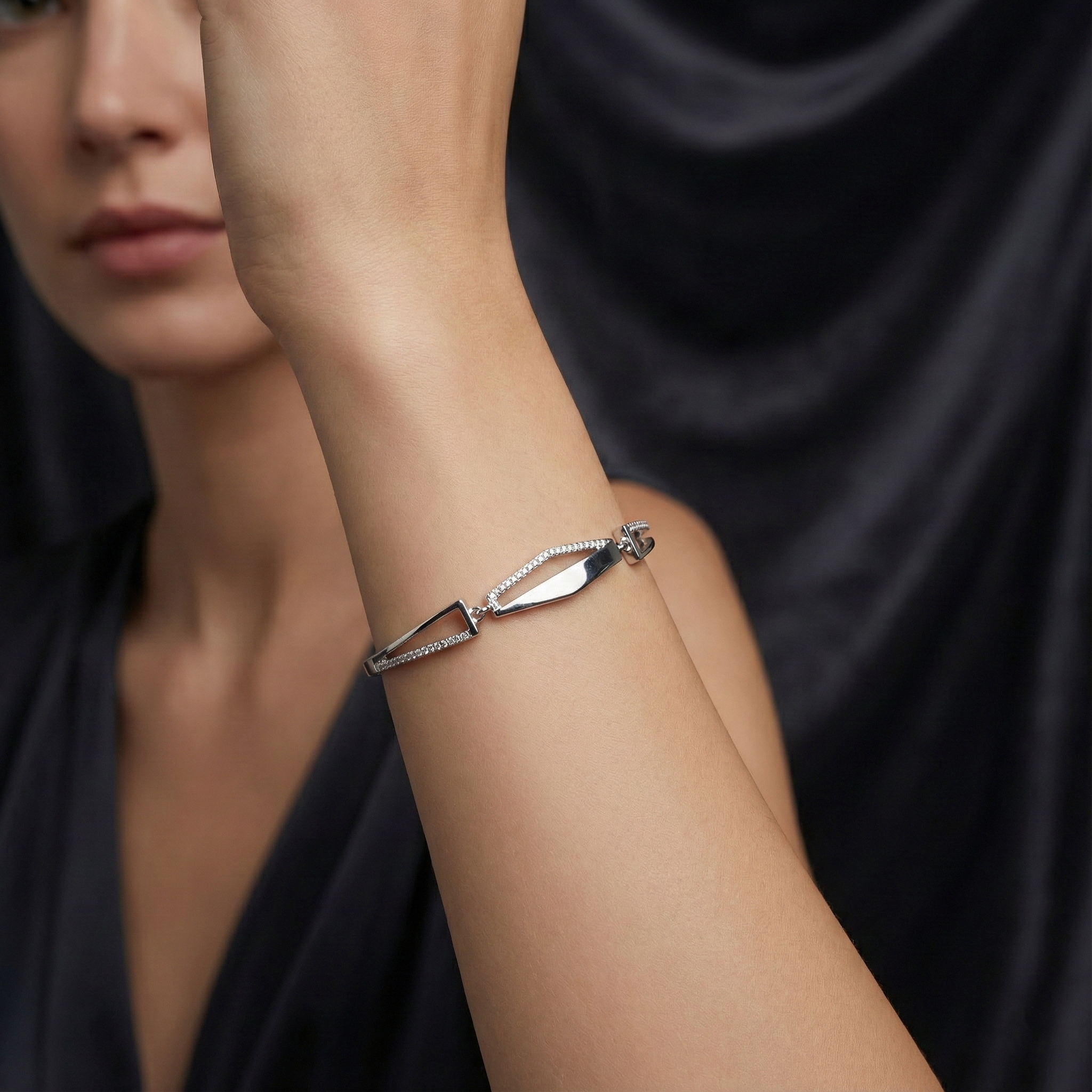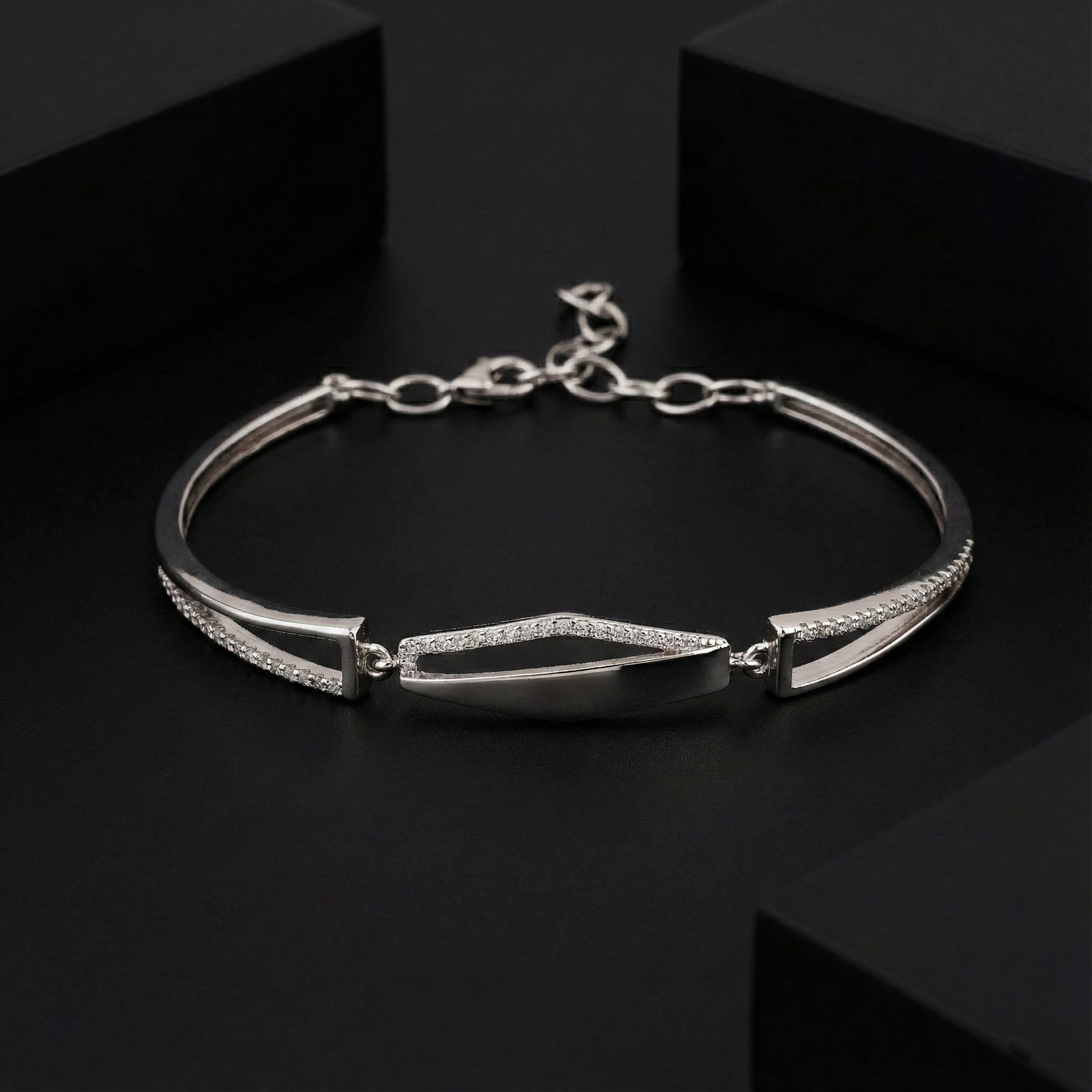 Elevate your everyday elegance with this refined 925 sterling silver bracelet, featuring a striking V-shaped cubic zirconia bar that captures light with understated brilliance. The minimalist design seamlessly transitions from casual to formal occasions, offering versatile sophistication for the modern wearer. Crafted with precision and finished to perfection, this piece combines contemporary aesthetics with timeless craftsmanship. An essential addition to any jewelry collection seeking clean lines and subtle glamour.
