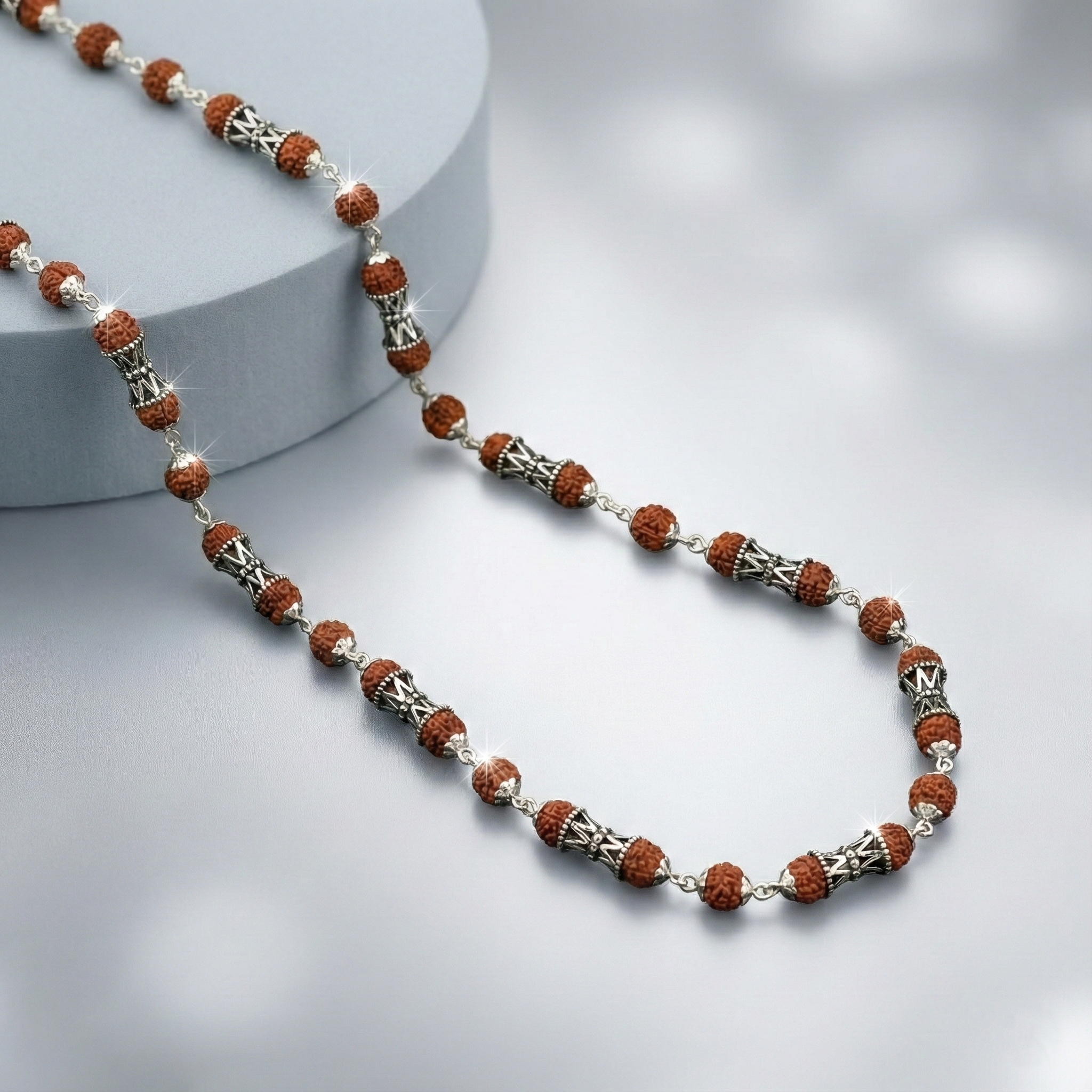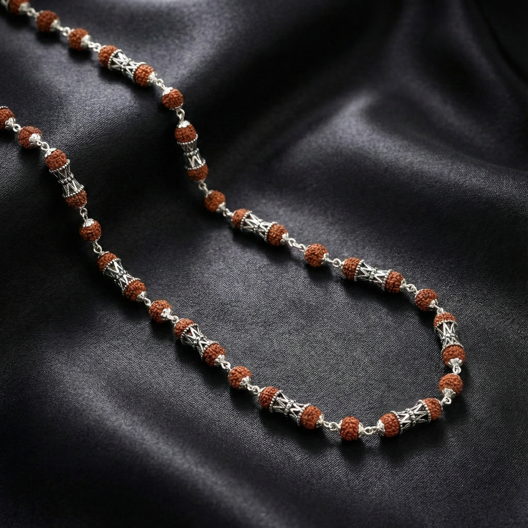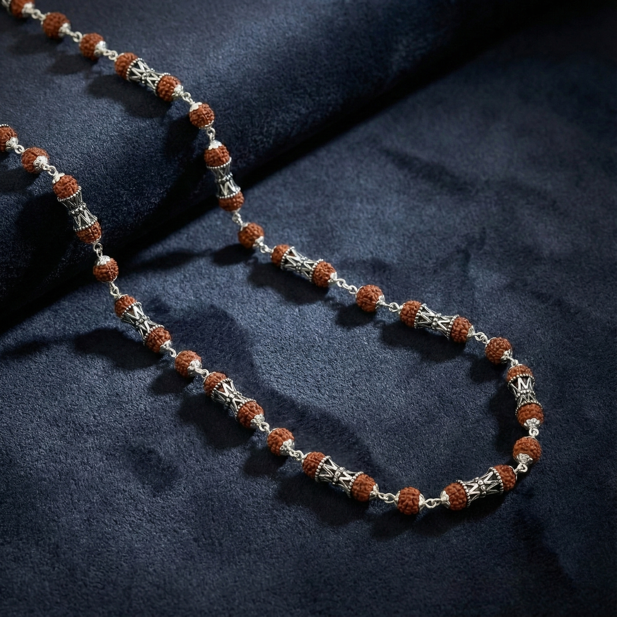 Elevate your spiritual practice with this exquisite Designer Rudraksha Mala, meticulously crafted for the discerning man. Each bead carries centuries of tradition, offering both aesthetic refinement and authentic cultural significance. The sophisticated design seamlessly complements traditional ethnic wear, making it an ideal accessory for meditation, prayer, or everyday spiritual connection. Handpicked rudraksha seeds are strung with precision, ensuring durability and timeless elegance. Perfect for those seeking to honor their heritage while maintaining contemporary style.