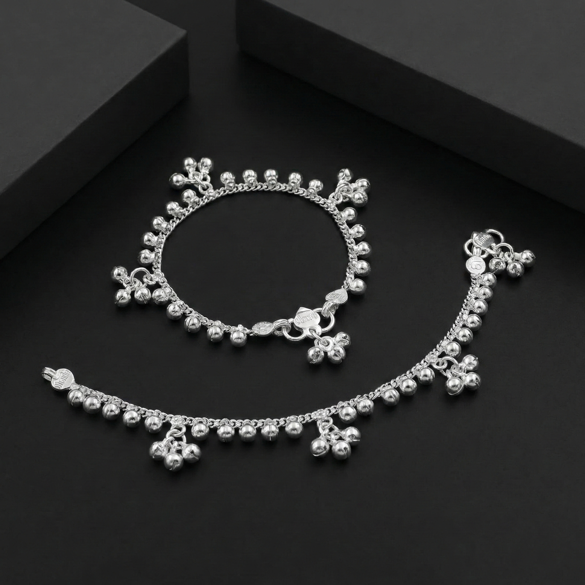 Discover the timeless elegance of our Silver Kolhapuri Boriya Ghughari, a masterpiece of traditional craftsmanship. This exquisite piece features intricate ghughari (bell) detailing that creates a melodious charm with every movement. Handcrafted with premium silver, it showcases the authentic artistry of Kolhapuri design—a heritage of skilled metalwork passed down through generations. Perfect for festive occasions, weddings, or adding a touch of cultural sophistication to your collection. Each piece is a testament to refined taste and timeless beauty.