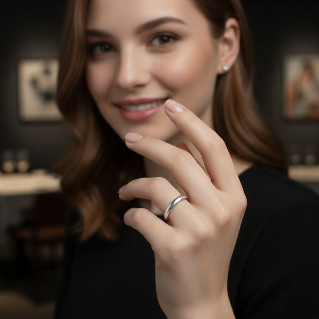 Discover refined simplicity with this 925 sterling silver band ring, a cornerstone piece for the discerning collector. Hallmarked for authenticity, this ring showcases meticulous craftsmanship with its pristine polished finish that radiates subtle sophistication. The minimalist silhouette transcends seasonal trends, offering timeless versatility whether worn solo or as part of a curated stack. Its smooth, mirror-like surface celebrates the inherent lustre of genuine sterling silver, creating an accessory that complements both formal occasions and refined everyday wear with understated grace.